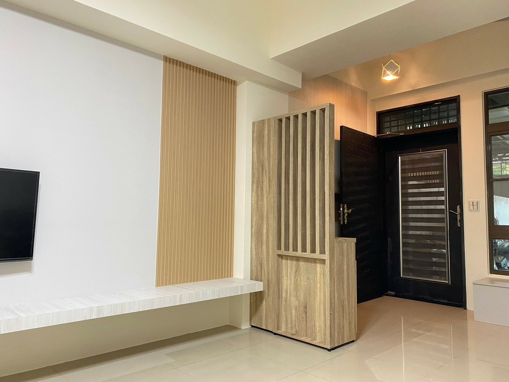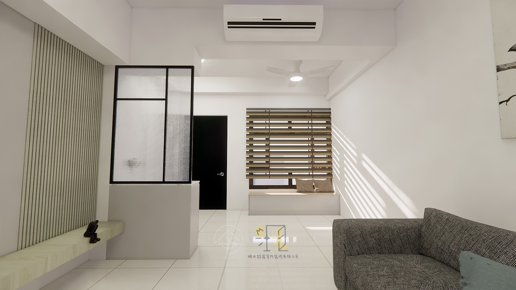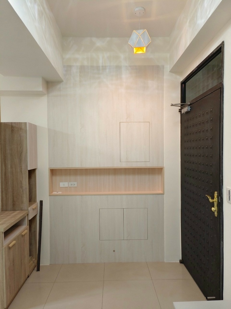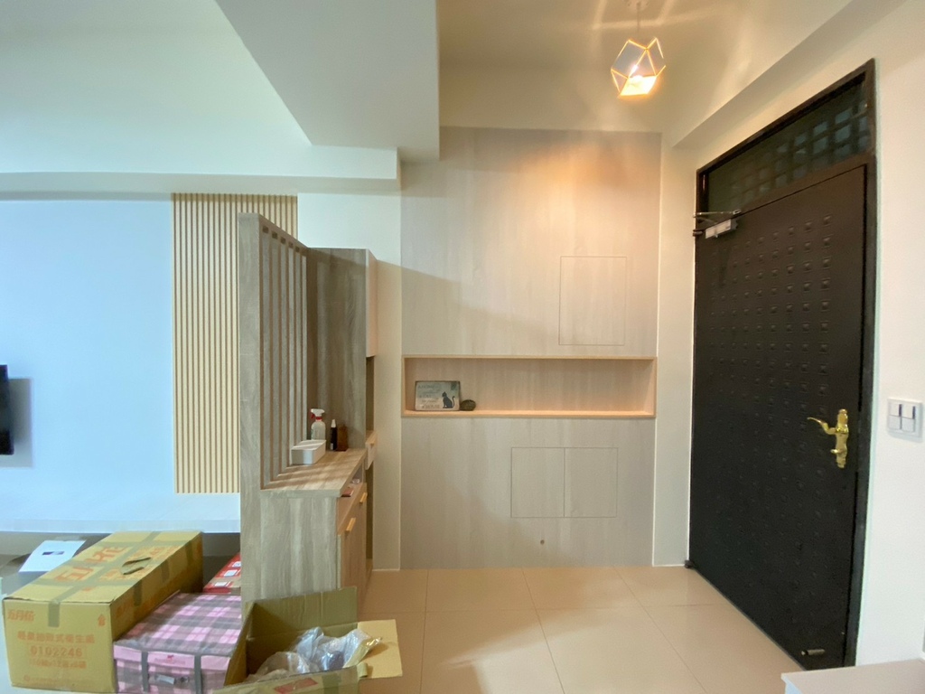 3、玄關沒有遮擋,打開大門就會一眼望穿,希望能做個屏風之類的物件,增加隱私感。(後來我們買到喜歡的現成屏風櫃,所以請設計師改幫我們設計玄關的電箱牆面。)