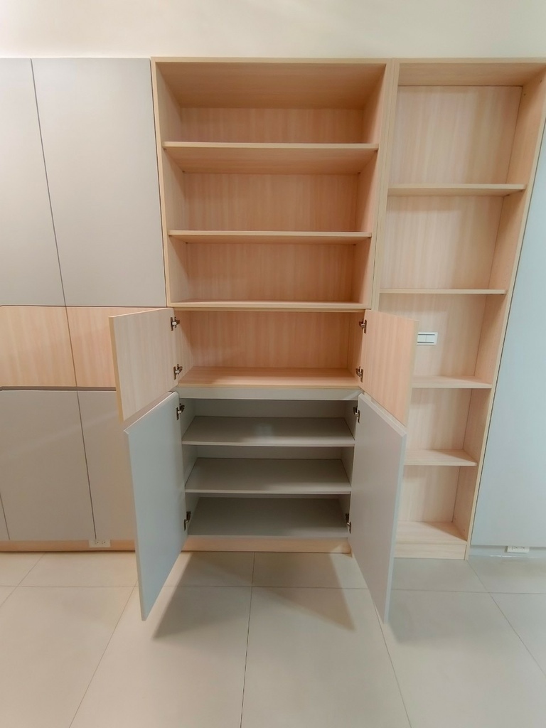 ▼系統櫃材質我們也覺得很不錯,是E1等級的台貼的美耐皿;五金是川湖台製五金。