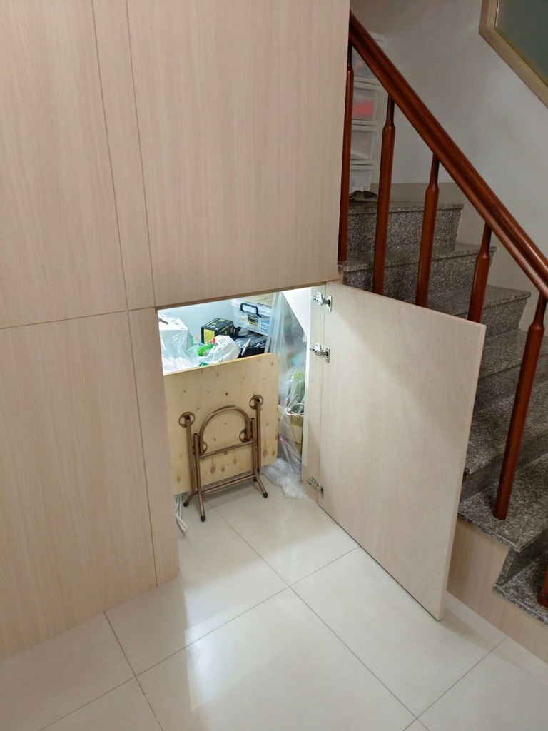 ▼這是車庫階梯前的收納櫃,同樣也有充足的收納空間。