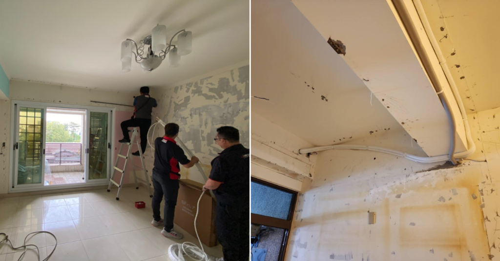 ▼舊裝修拆除中,客廳小隔間拆掉後空間變得好大,光線也進來了,好棒😍
