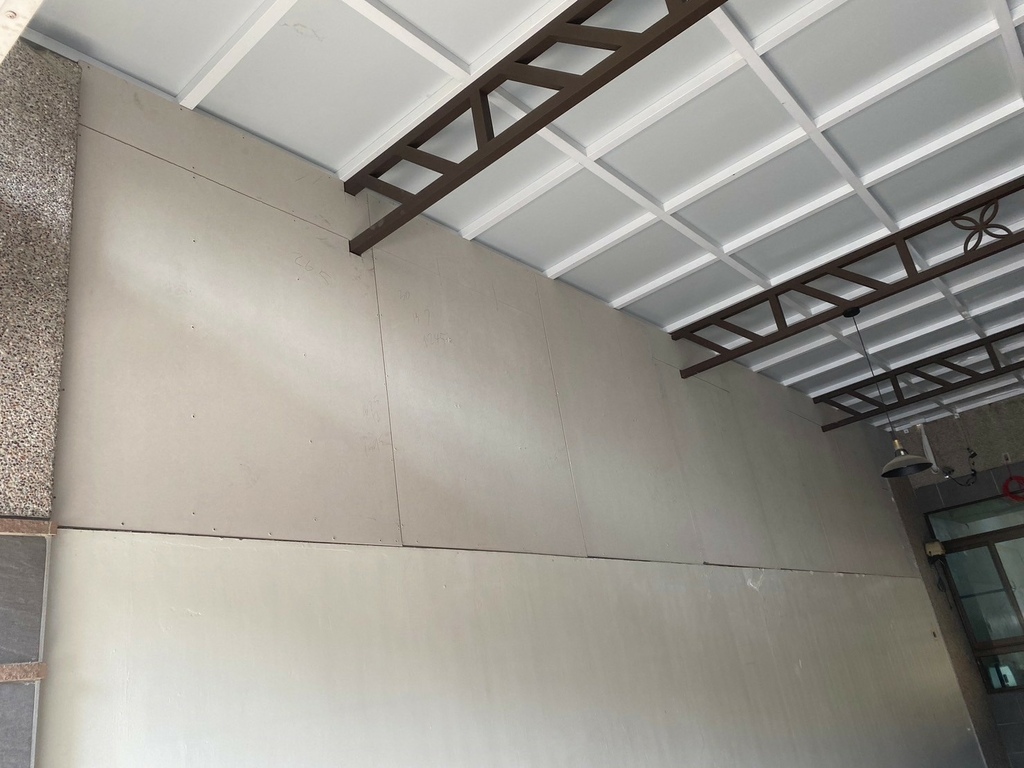 車庫單面隔間封板/一樓客廳冷氣包管/一樓客廳櫃體上部封板/一樓客廳電視牆及格柵板造型/一樓客廳電視櫃平台造型/一樓客廳浴室造型牆面及隱藏門/一樓客廳玄關造型牆面/二樓主臥床頭封牆內塞岩綿/三樓主臥櫃體上部包板/三樓主臥冷氣包管