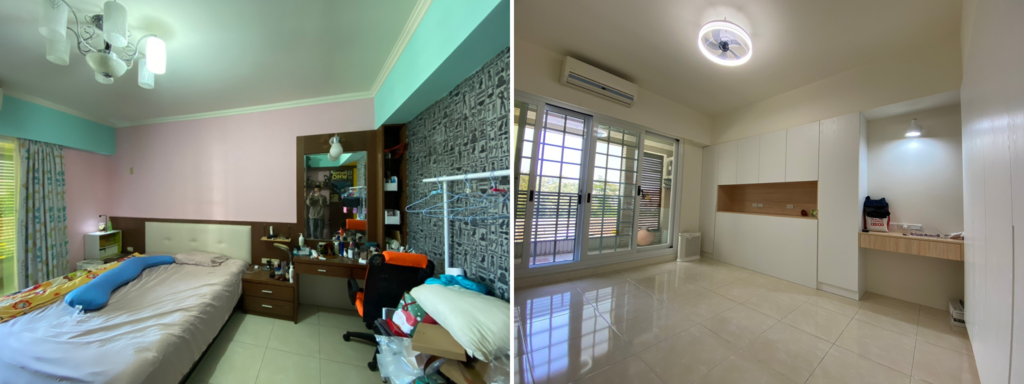 ▼現在從床頭櫃、衣櫃到收納物品櫃,經過設計師的一致規劃,無印風的色系讓房間看起來明亮寬敞,也不會有壓迫感,生活物品也終於能好好收進櫃子裡!