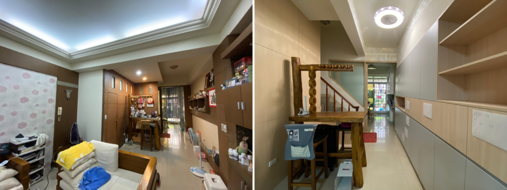 房子是透天中古屋,買的時候已經有前屋主的裝修,當時覺得裝修得還不錯,加上購屋後沒有多餘的裝潢費,所以一直延用到現在。但經過幾年,覺得舊裝修已經不符合我們的喜好和使用需求,當然還是有我們很喜歡的部分,所以希望設計師幫我們重新規劃。