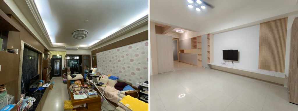 ▼明明就是同一棟房子、同一個空間,怎麼前後差別這麼大呢!裝潢設計根本就是魔法💫 💫天花板的裝飾條被拆除,更加現代感的俐落線條,讓我覺得空間不只大了一倍!