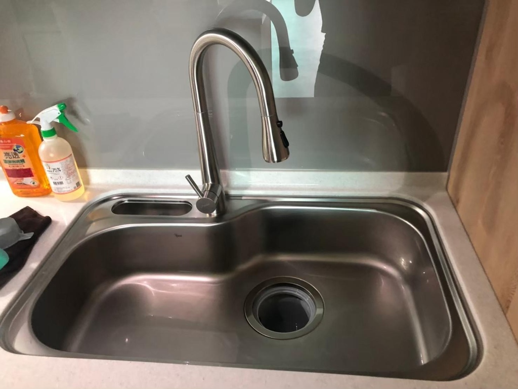 ▼洗碗槽的髒污不曉得是不是裝潢時用到什麼溶劑,我自己初步用水是清不起來,這下要考驗清潔公司的功力了!