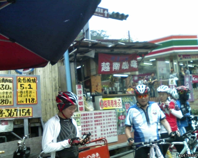 感謝阿傑、TOYOTA一路押隊,感謝CS大回程指引一條不錯走的新路!熙哥這次多災多難+千辛萬苦~~祝你早日康復!!補上幾張照片,因為是用MP3 player順手拍的,所以畫質很差請見諒~~一陸押隊的傑哥與豐田哥!!熙哥在馬路對面跟大家揮手指引方向,好像瞬間忘了脫卡,用膝蓋人肉護蘿蔔,還留蠻多血的~~路邊吹一吹還是一路騎到內灣,後來路上踏板螺絲還射出來~~修完繼續上!!實在是硬漢!!賓哥英姿!!大家在龍潭大池小歇~~聽說去年初團也是在這家吃~~老闆人還不錯疊疊樂整裝向台北出發