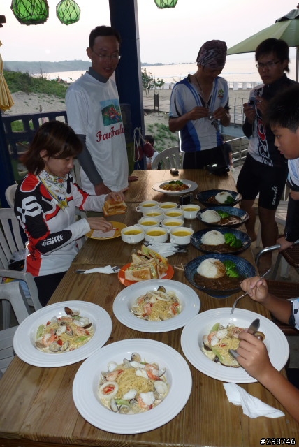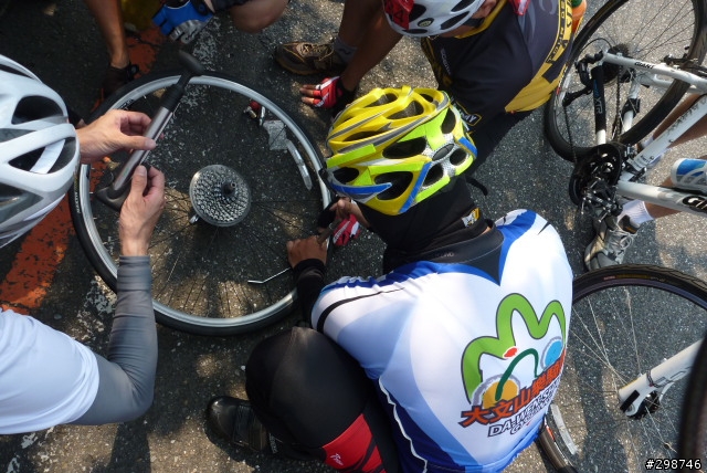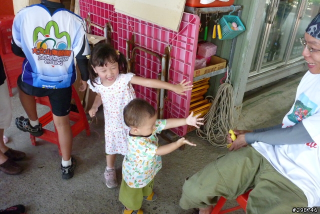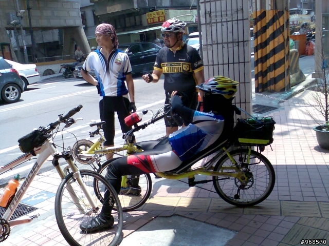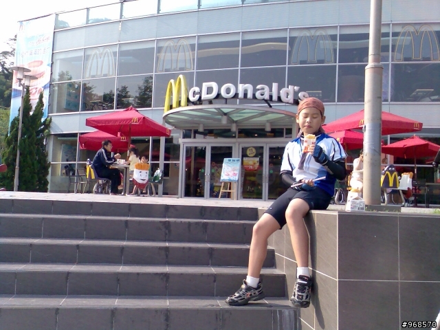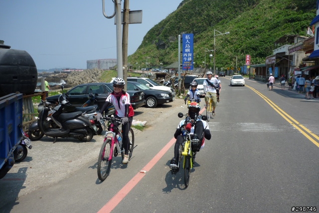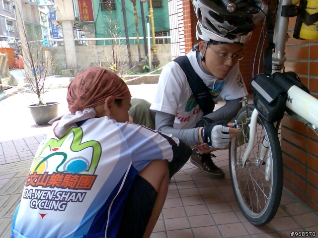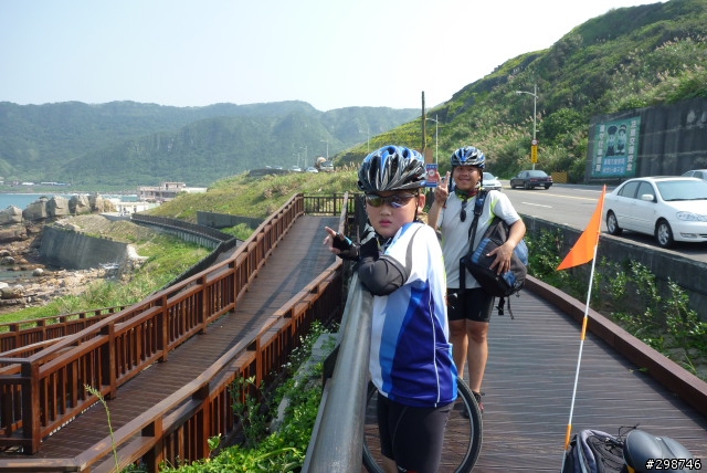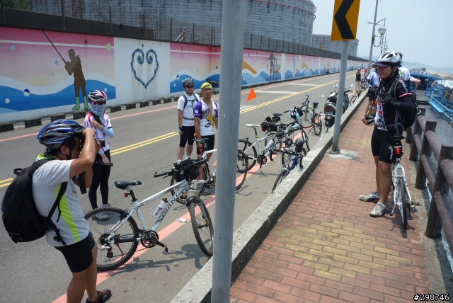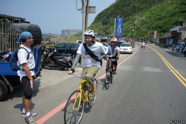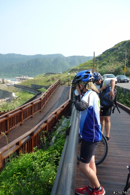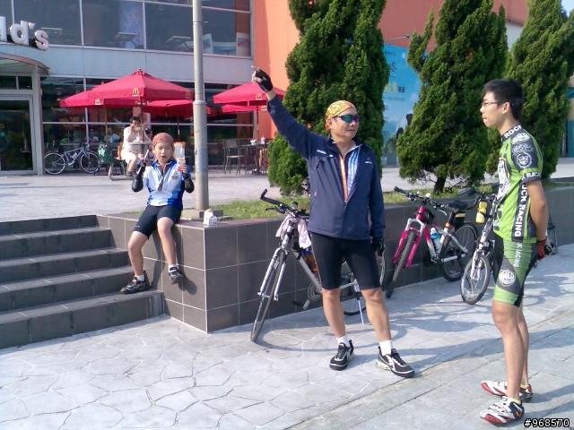 小遊記.看圖說故事.......98年5月30日.天氣晴.阿駿的一天.由麥當勞開始.這是他今天出遊的動力...到達目的地.看到熟悉的面孔.很高興的向CS打招呼CS~我有記得沒喊你〝大哥〞這時有個新同學來相認~同是文山區在地的小茅.從南深路走.這是我第一次騎單車走這條路.上一次經過好像是上輩子的事了.還記得當時的路又窄又陡又坑坑疤疤的.很怕我的小勁風90會一不小心就前滾翻呢...哪知現在又寬廣又平坦.緩緩的坡.應該是練車的好地方遠遠的看到CS在樹蔭下停下來.還在想怎麼了記得CS沒抽菸呀.原來是爆胎了.阿駿看到人家在修車.就像被無形的吸鐵自動牽引過去一般自動自發.拖都拖不走.....眾好漢自動伸出援手.連打氣筒都不落人後.各個廠牌的打氣筒紛紛出動.連co2瓶也來參一咖喔.等待的時間.熟悉的臉孔紛紛出現.葛妮絲.peter.URD...笑笑鬧鬧的好開心今日的領騎小銘.背著5公斤重的裝備.一路記下點點滴滴......阿駿的姑姑住汐止.一看到熟悉的道路.阿駿這臭小子竟然就想繞跑.鬧著要去姑姑家玩.不想騎了.....當然不準.給我繼續騎其實剛到汐止.大夥就自動散開.視察汐止市區道路.幸好我緊跟著文哥.否則我可能就在在路邊.......大夥兒很快就成還原隊形.一路向前騎.進入基隆港看到船的那一刻.雖然沒有停下來狂笑三聲.但是心裡真的很興奮.11:59時我從西岸碼頭過.看到標示溫度是24度C覺得不太可能吧.可惜正在趕路.沒辦法留下真相.因為~我們這一小隊~又跟大夥走散了.......在外木山的中山國中〈還是高中?〉那個地方走岔了結果往前多繞了一下.最後在警察局前歇歇問路URD的車可以躺一下.真是羨慕呀...阿駿無聊的靠在牆邊先前大夥發現阿駿的前輪胎沒裝正.本來說中午休息時再幫他看看.結果阿駿閒著無聊.一直纏著叔叔們幫他修車...TOYOTA趕緊幫他調調煞車線讓他〝解解饞〞安靜一下阿綠和URD也去對街買來可口的鹹酥雞填肚子嘿嘿.吃了人家的東西都忘了說謝謝.趕緊補謝一下.很好吃耶!待續...