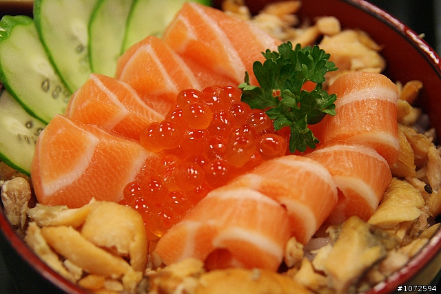 冏男點的,拍起來好美味,我猜是鮭魚親子蓋飯?!