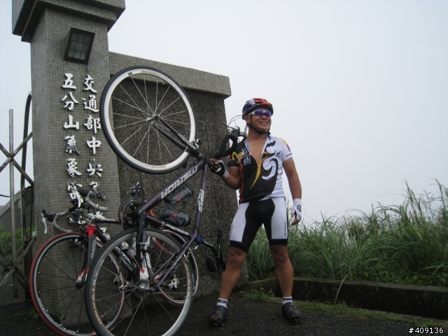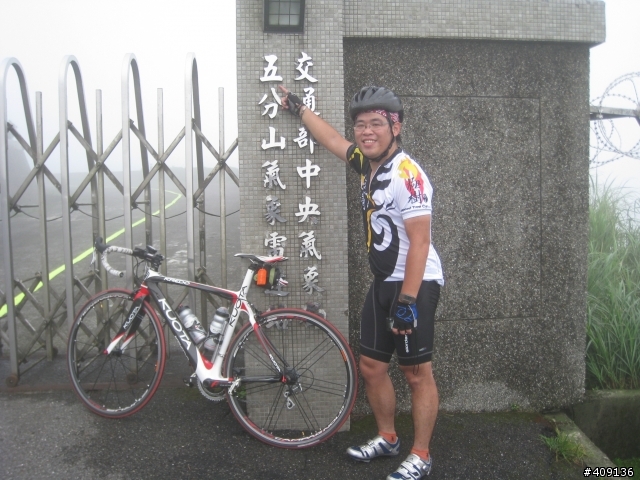 早上準備出發...嗯..就我們這些天色也漸漸亮了非常多的紅綠燈阿翔也等得不耐煩了好久不見的勇腳俊華,聽說明天要去宇老大滿貫M字號阿翔集氣中小羽很輕鬆的就到菁桐了來菁桐一定要拍一下的啦阿翔也輕鬆愉快俊華馬上也跟著出現阿泰展現性感胸肌Jackie輕鬆愉快這是過了十分平交道往五分山入口的106縣道高點...真的有夠硬斗...坡度在7%~9%之間高度從200m上升到480m,長度約5.7KM....某些路段達12%....早知道前面106就留點力氣五分山入口低調的阿翔, 請注意阿翔的新眼鏡,那個閃爍的圈圈標誌一起來用HTC吧....五分山路途上遠挑基隆外海無止境的髮夾彎與美不勝收的景色本日登山王,紅點衫小羽入口信箱取景中雄壯的背影阿..阿泰準備拍啦俊華攻頂五分山的美,要親身體會過才知道, 漫漫長路與裊繞山嵐, 不是言語就可以簡單描寫霧中的小白球終於露臉了阿翔帥氣攻頂人客阿!! Roger開團也是會吃喝的啦...十分榕樹下米粉湯..讚大家都餓了古早味粉圓冰 (俊華..我對不起你!!)回程時遇到大太陽...熱翻了..到底有多熱..看阿泰表情就可以略知一二全長116KM, 好久沒有這樣痛快騎車了,大腿肌肉痛到蹲不下來也值得