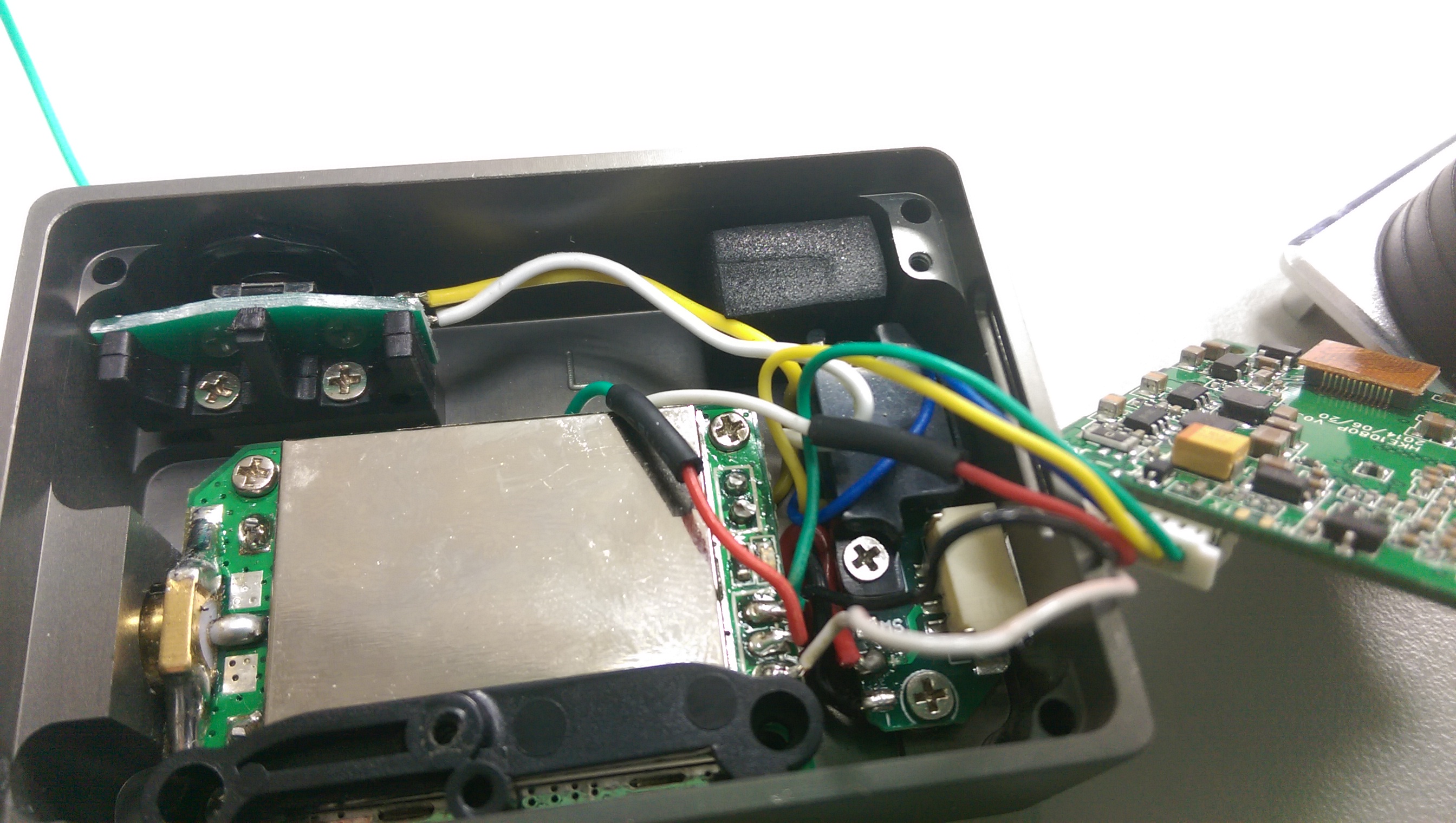 1,首先拆開iLook+ 攝影機,將紅色線剪斷,這是影像線,剪開後再連接不同色系的線材接往OSD,要記住哪一條是影像輸出,哪一條是輸入(往5.8G發射器的輸入)~~