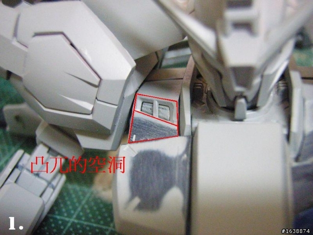 ~進度9~上回說要製作手臂的部份~不過~我食言了~~~~看這次搞了什麼!改造不困難~最辛苦的是 砍的亂七八糟後 還要做最後的整平.....這次也請出了很久沒使用的 塑膠斷頭台小腿護膝 砍掉多餘的部份腳掌 延長2mm 上部護甲也往前移動 自己鑽洞打pin 另類裂甲法 就輕鬆搞定~腿部還有點構思 下次在弄吧~原套件 攻擊自由的排氣孔 經過胸部往前拉長後 已經快要看不到了使用壽屋補品、SF零件做黏合 再套入 (補品需做些許削磨 才能吻合)雖然上次堂主建議我切膠板作散熱葉片但我就是懶嘛~排氣孔一整個有存在感~上次做的填補噴灰後 看起來也挺自然的~自己看了 都忍不住說 酷斃了 帥!!今後的改造依然是走一步算一步~最後會變成什麼樣子 我也不清楚~狂戰野牛的鋼彈工作室