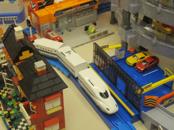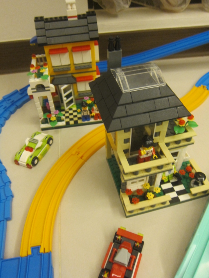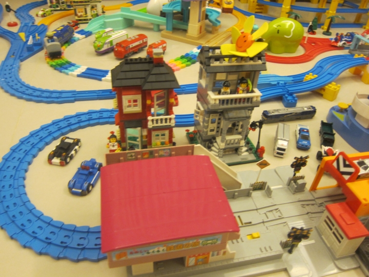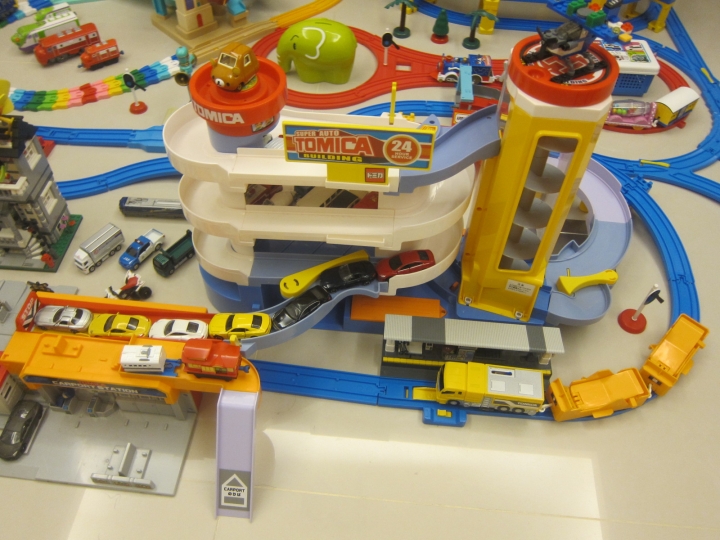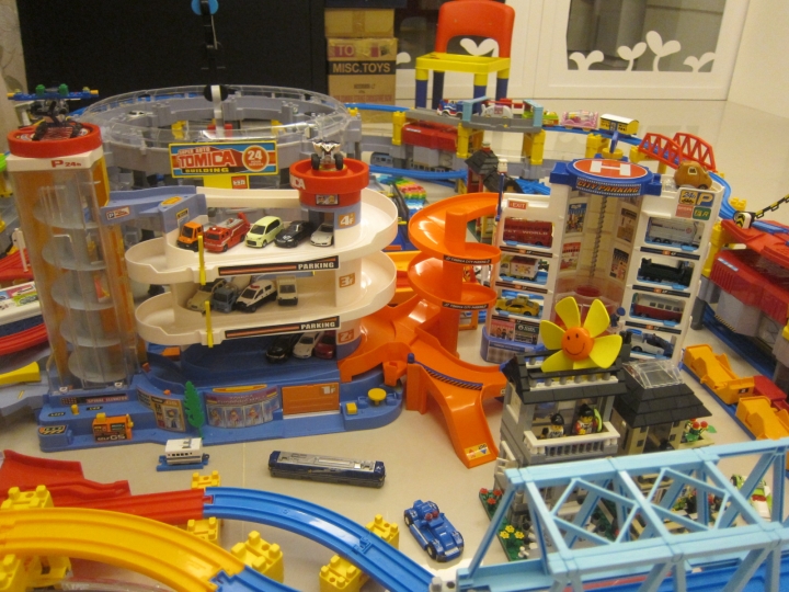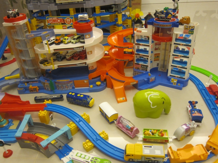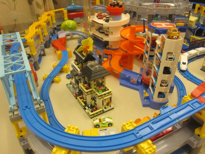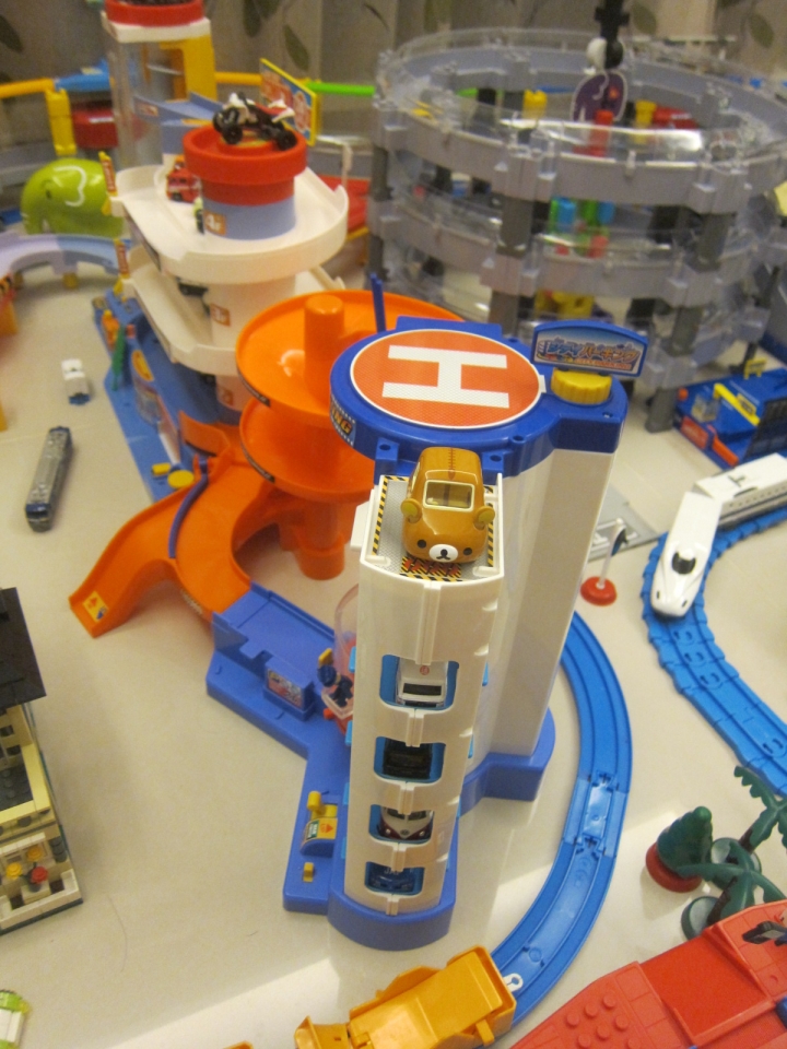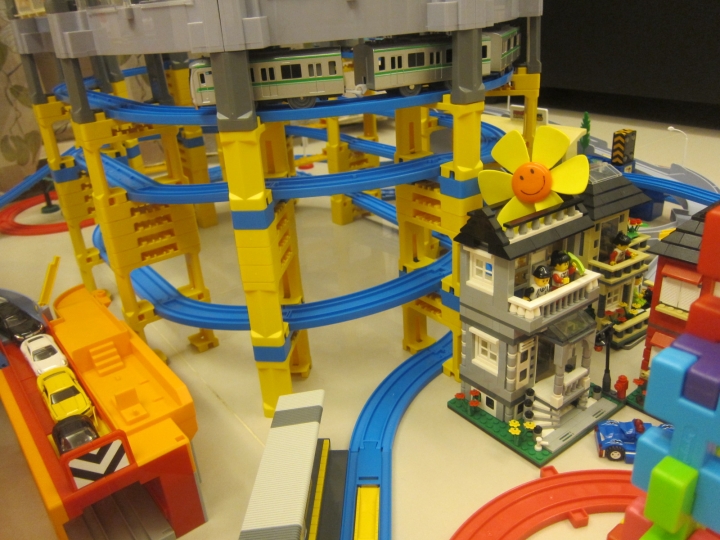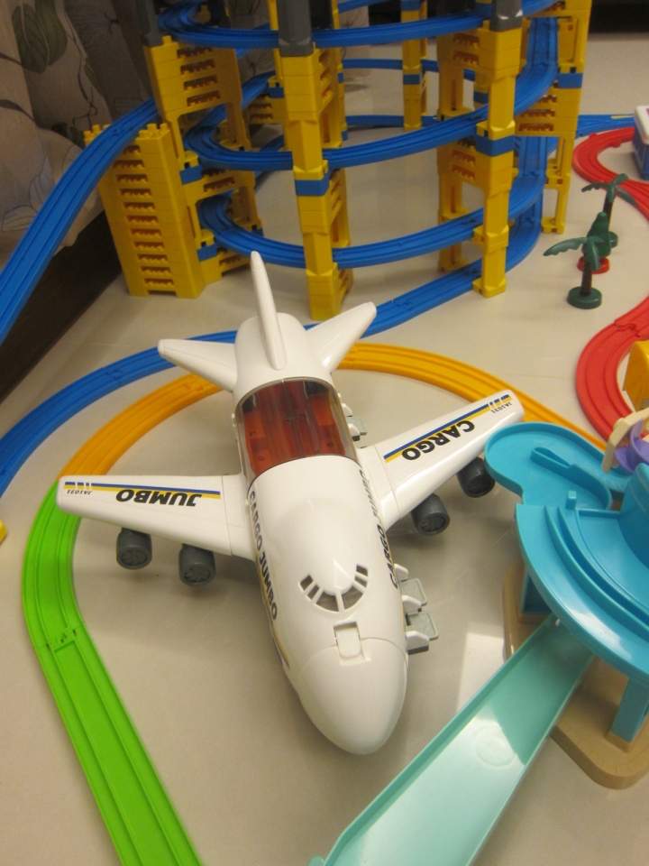 勾起我的回憶以前我買了一大堆藍色軌道和黃色支架常常組給孩子們玩軌道架3、4層,火車可以一路往上繞,再繞下來,很有意思可是組好沒多久,兒子就扮怪獸全部破壞掉孩子長大後就收起來沒再玩了回去找看看還在不在好像也有拍影片,找找看