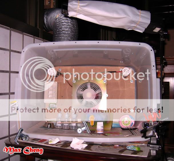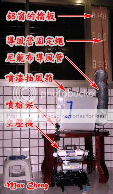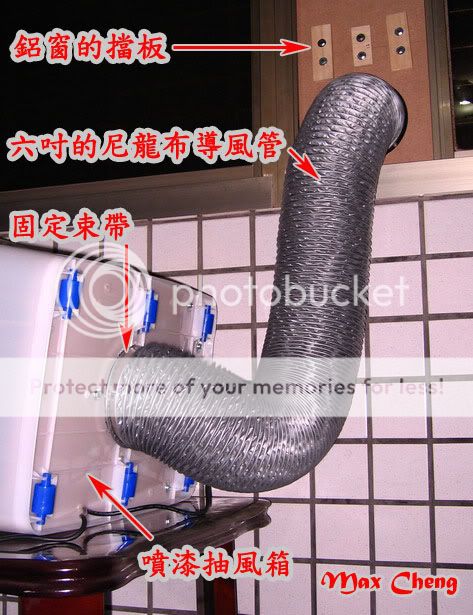 我本來也要買 GT-03,但是真的太貴了,買不下手!!! 樓主你還有一些零配件沒買,例如:濾網、濾棉、扁平型排風管,這些都不便宜!!!我後來還是自己動手做了一個抽風箱,一共花了 2300 元,如果沒有買錯材料,大概 2000 元就夠了!這是我自製的抽風箱 在鋁窗上做一個活動的檔板 把噴漆環境架設起來 除了桌子、檯燈、空壓機,其它的物品都可以收到整理箱之中 這是電力配線圖 按這裡可以看 抽風箱 的製作 按這裡可以看我的 噴漆環境 及 工具