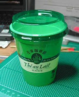 右邊是改良版,用咖啡杯蓋做的透明塑膠零件
