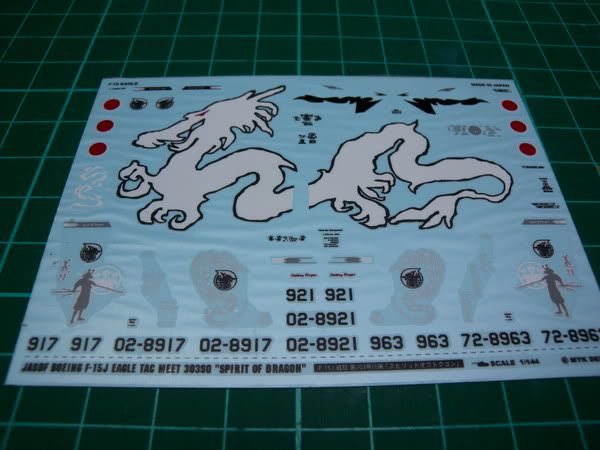 這次採用水貼是MYK DESIGN 的JASDF BOEING F-15J "SPIRIT OF DRAGON"及JASDF BOEING F-15J/DJ "CAUTION DATE"