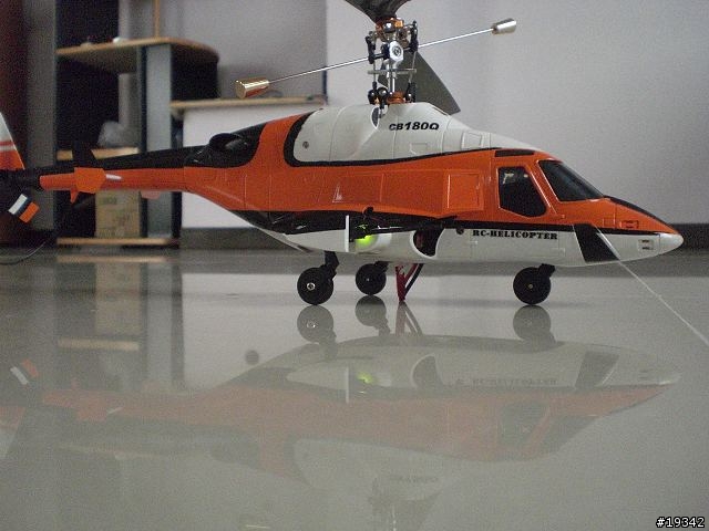 今天剛收到廠商寄來的CB180Q(BELL-222機種,有點像飛狼,只是塗裝為橙/黑/白),我第一次飛有尾馬達的直昇機,說真的,還有點不太習慣呢,因為尾巴很靈敏(應該說靈敏程度非線性控制),不過飛起來倒是很穩,只是從馬達開始轉到飛上天這段期間,機體抖得很厲害,一定要一下子就送上天,不然就看他在地上一直抖!