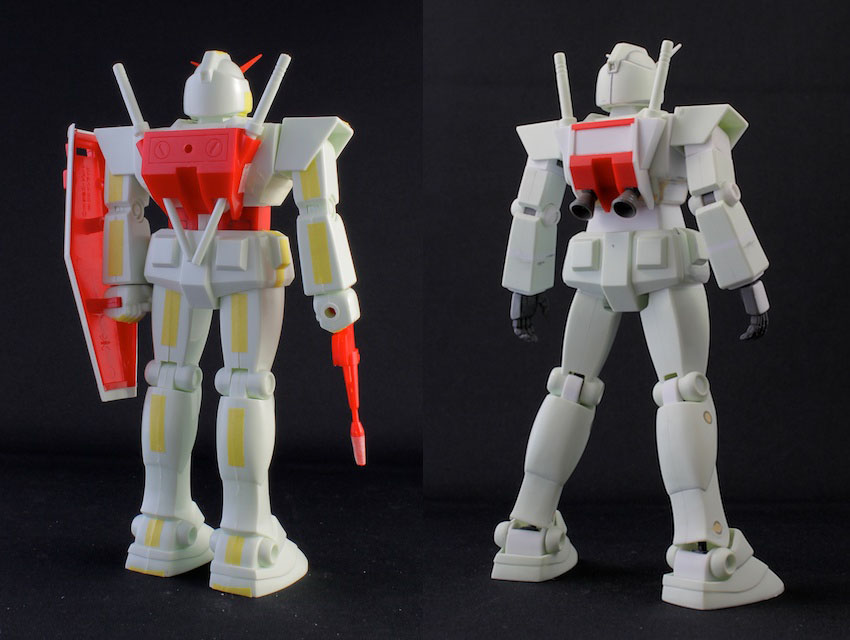 「假組裝」完成後RX-78整體散發出濃濃的玩具感及復古風,有著如同1979年播出機動戰士卡通般的滑稽造型;我仔細觀看它整體造型許久,心想這就是當年石破天驚劃時代之作嗎?它的確完全沒有美感可言。