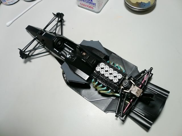 只剩下引擎變速箱兩側的蓋板要噴紅色(天亮再戰)