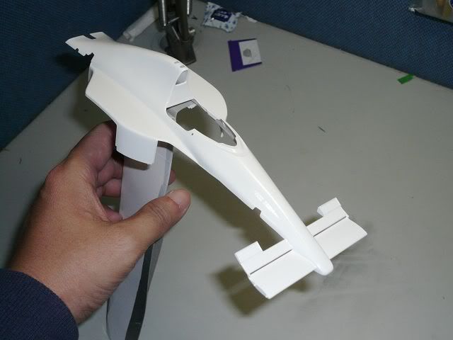 最後再把擋風鏡,尾翼...結合,然後架上去.