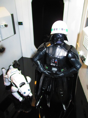 BANDAI 1/12 黑武士及風暴兵今天組裝完成只素組,因為本身模型是亮面素組完成度就很好,只有小地方補色,但如果能有展示底座就更好,所以自己用珍珠板及壓克力製作地台先製作艙門兩邊牆壁用改造板製作通風口再加上一些小零件(按鈕用PC零件黏上,管線用廢膠條)上亮白再加上彈孔就完成小兵先打頭鎮可動度還OK,能採高跪姿小兵打完,恭迎主將再來是壽屋1/10亂入........2位施主走錯場景......宇宙最強賞金獵人首部曲最後領便當下台的達斯魔小兵還要養家活口,兼差工地......工作一定要戴安全帽更新再加一隻1/12沙漠風暴兵自製肩甲及背包