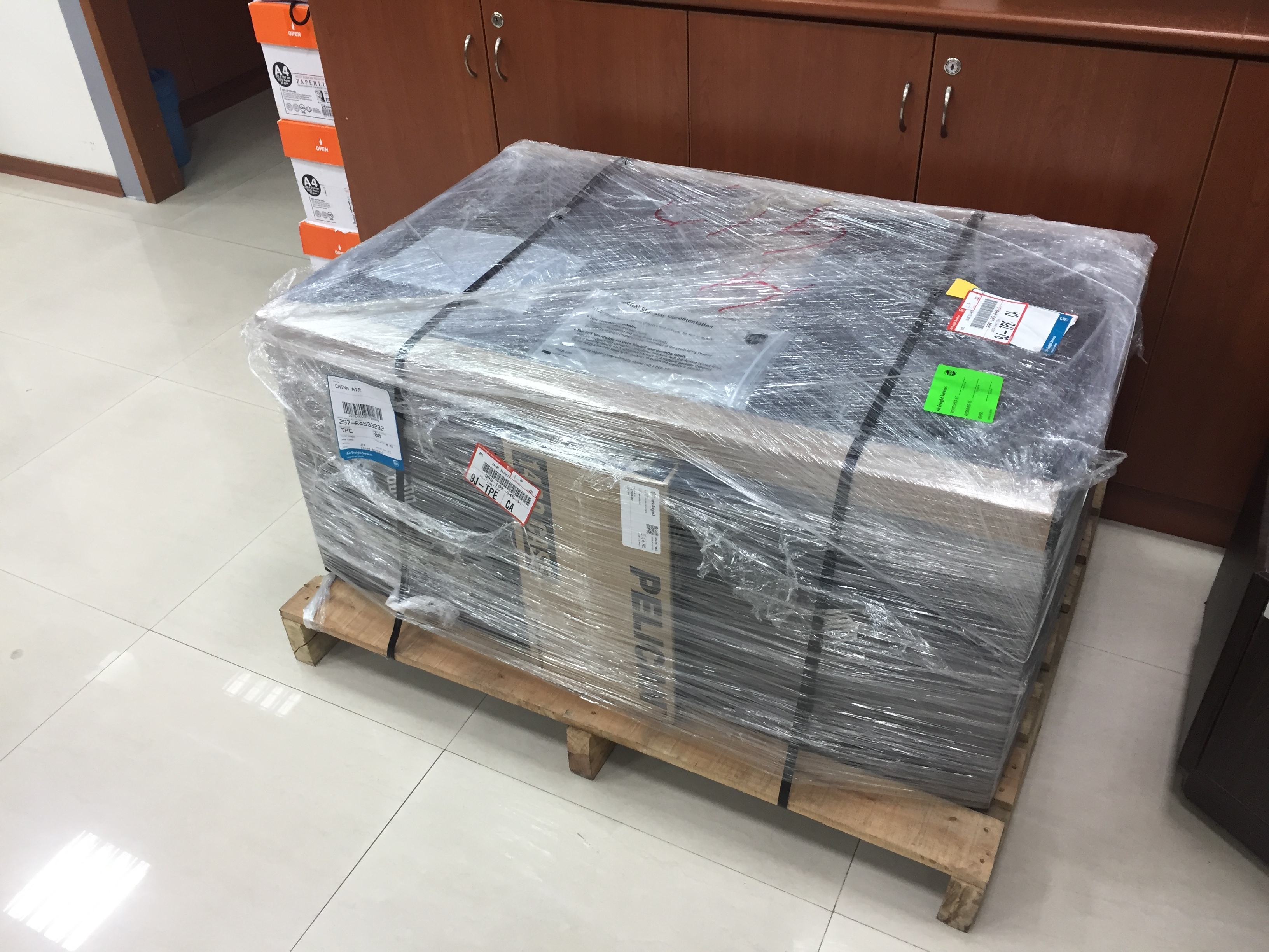 後來發現我錯怪他了,真正的料材是這個超厚實的防潮箱內裝的大捲尼龍。