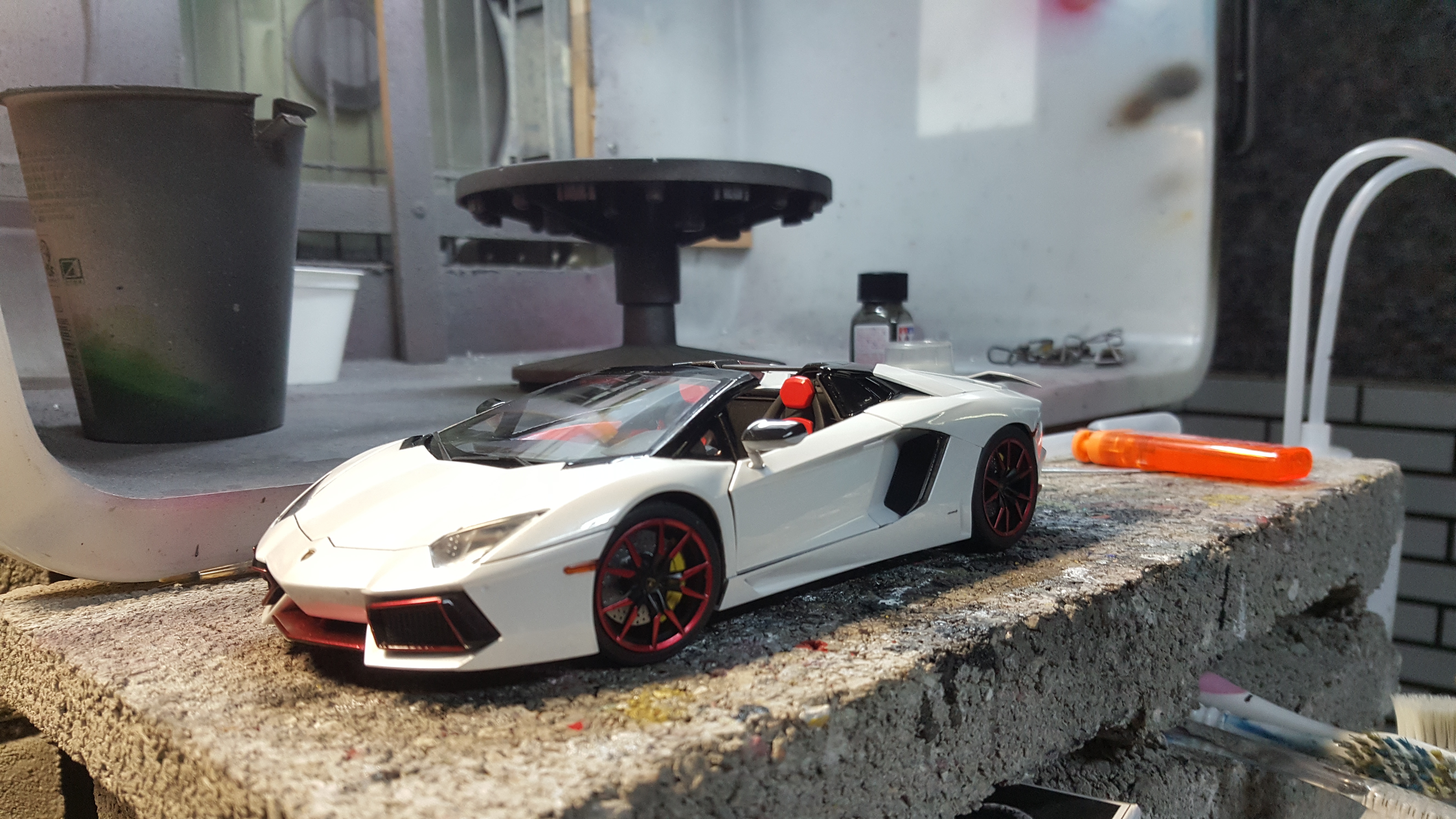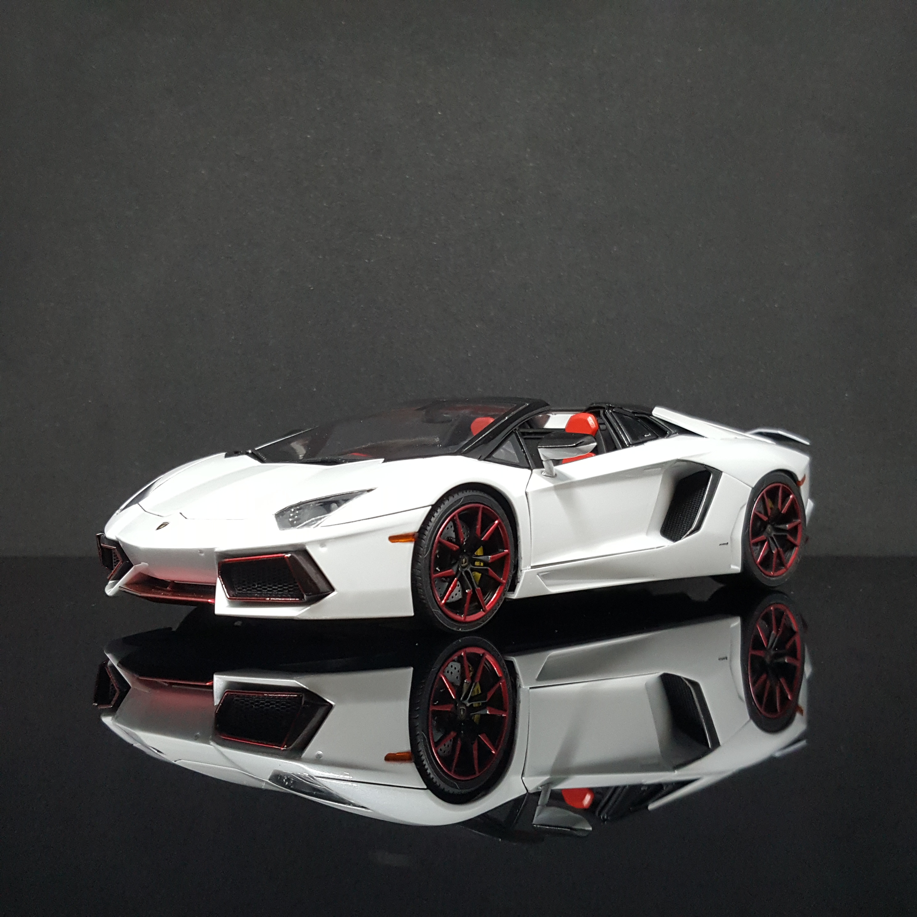 雖然骨子裡愛著馬,但其實也很喜歡牛牛的其中一台,LP700-4 Roadster,直到有客人訂做,小弟也剛好有機會代工到這台車,青島的模子,比富士美好點了,只有前輪的定軸座有點掉漆的變形...還有一個「好險用不到的零件」斷件!