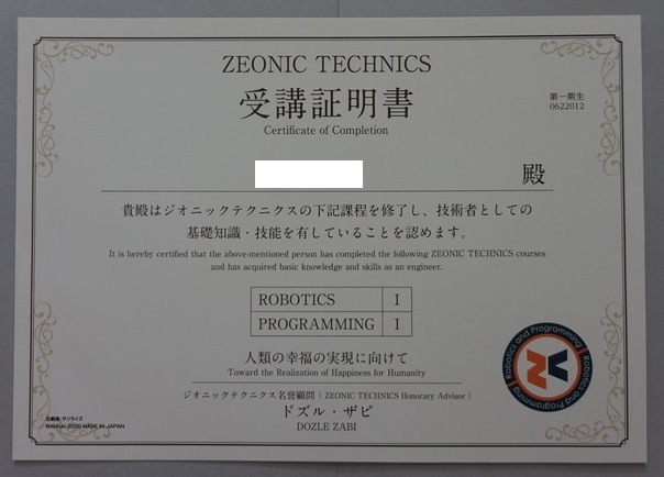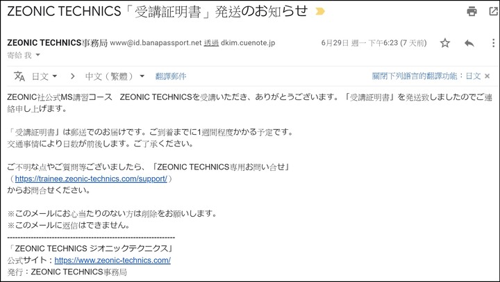 1.受講證是要上官網登錄上課,完成後會收到 ZEONIC TECHNICS的認證書。