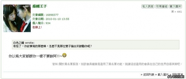 又要他會開網站....又要求他能在一堆沒有法律效力的規範性文字之下能公正客觀的"執法".....各位大大...這樣的要求會不會太超過??上次我也莫名被停權.....幹麻在乎???我談關於汽車旅館的時勢.....也被警告......我也沒有要帶管妹上汽車旅館的衝動啊.....@@"嘴砲....嘴泡!當泡泡消失.....您要硬逼自己記得那個味道?????