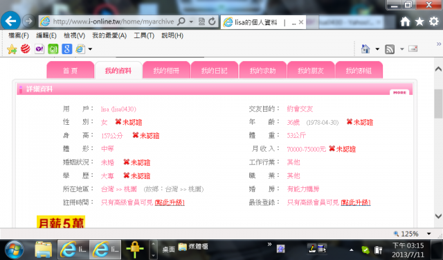 lisa0430 wrote:還有,我得月薪到現在還沒拿到七八萬,差額是由您幫我補嗎? 唉呀呀~這麼說LISA妹在別的網站寫的收入是騙人的囉~真沒想到小學老師也會說謊啊!本來還在高興LISA妹號稱交往過的男人平均收入在百萬,我可是高了二倍以上,可是啊,會說謊的女人真不可愛啊!真是太令人失望了。還有啊~果然不出所料被黑掉了,這種一言堂只聽歌功頌德巴結的話,容不下任何客觀批評,不就是活脫脫現在台灣教師的自大作風寫照嗎?真的一點都不驚訝啊, 這種心胸也難怪教出一堆令人搖頭的學生啊~還想教訓別人不夠尊師重道呢, 哈哈哈台灣現在就是會吵的小孩有糖吃嘛, 這不過是另一篇打著道德高尚名號說穿了還是私心私利作祟罷了。真的程度好有教學熱忱怎麼不學LISA妹認真努力考上師院當正式老師呢?程度差考不上正式教師再來哇哇叫收入少,不就跟那些無牌謢士吵糖吃一個樣嗎?誰逼他們去做鐘點教師了嗎?