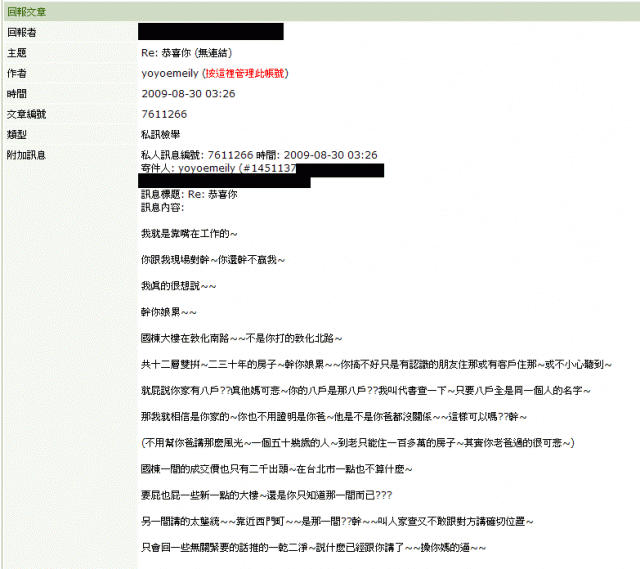 此人標準的網路一條龍,現實一條蟲全身上下最值錢的玩意就是呵護有至的勁戰125有沒有神人可以公布一下此人的玉照 好讓鄉民瞻仰一下大家對這個帳號有沒有映像yoyoemeily此人的歷史帳號魔鬼中出者第一集& bobnedtoup & bobneedtoup & yoyoemeily & 巅羊的梦魇 & richer A & richer Bhttp://www.mobile01.com/topicdetail.php?f=292&t=1303032&p=24http://www.mobile01.com/topicdetail.php?f=31&t=1210033