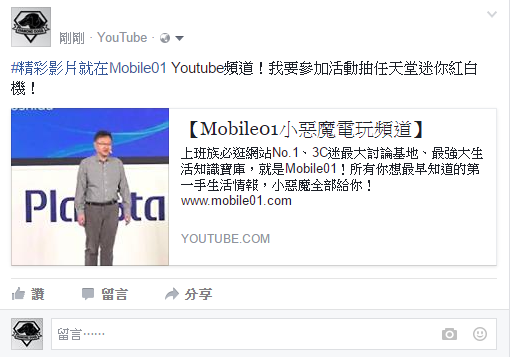 當初就是在這頻道看到GARMIN與MOBILE01合作的活動促使我參加了今年GARMIN在11/19在台南所舉行的"安平兩鐵趴",後來才知道這次MOBILE01並沒有參與讓我好生失望,希望明年的北宜能在再看到MOBILE01的小惡魔們繼續在活動裡發光發熱!!#精彩影片就在Mobile01 Youtube頻道!我要參加活動抽任天堂迷你紅白機!
