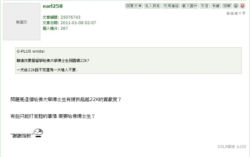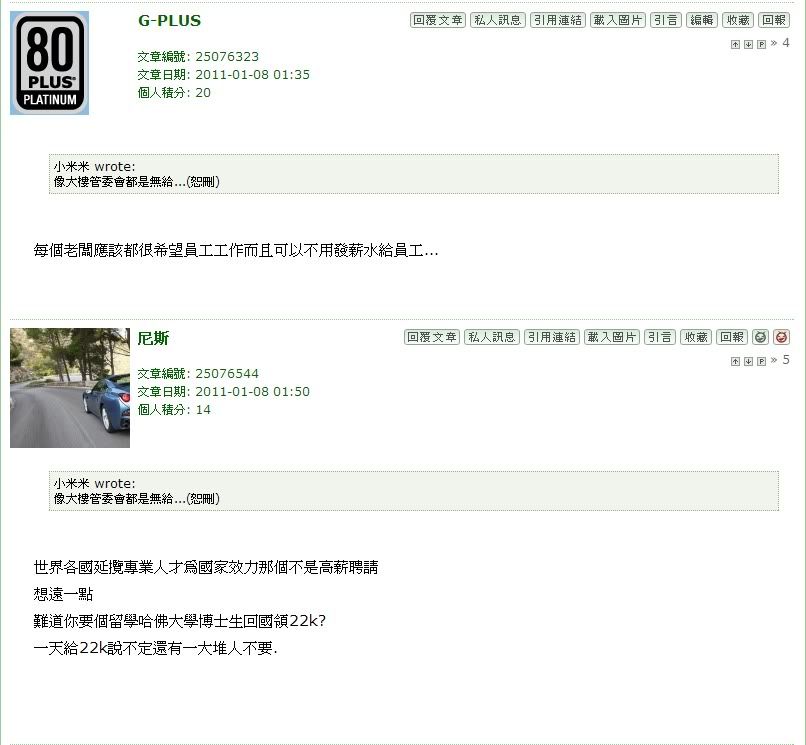 尼斯 wrote:別說是中科院那些院士,你當建高速公路,水壩,發電廠,......這些公務員都只領22k的資格.嘴砲一下東西就出來哩 大大們的自大又不是一天兩天的事了, 自以為自己會做些雜事所以領了22K很委屈,更要求別人也要像自己一樣領22K...真的是換了位置就換了腦袋.