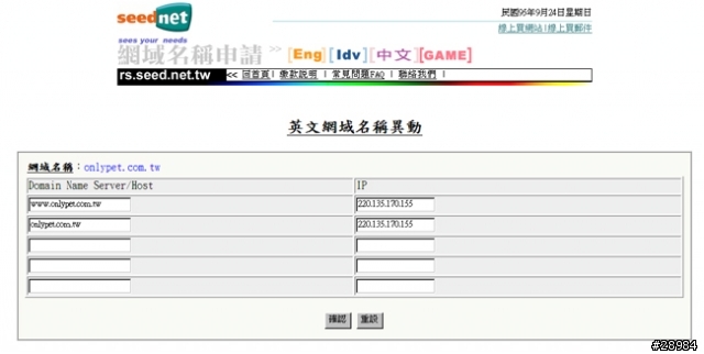 4. 確定 DNS 主機上的資料運作正常後, 在 SeedNet 註冊 DNS 主機的資料.