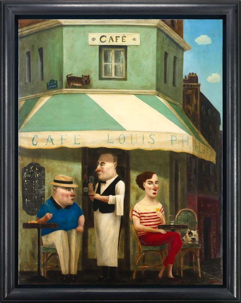 本尾稔《路易·菲利普咖啡館的客人》油畫.