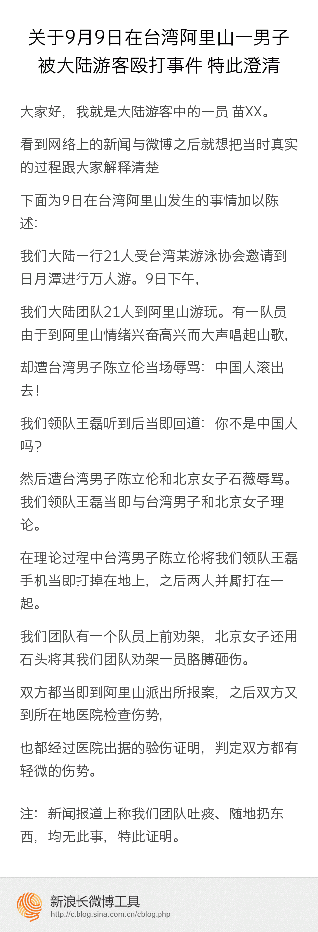 微博上找到事件另一方陸客團團員的說法…原po陳先生要不要回應一下?