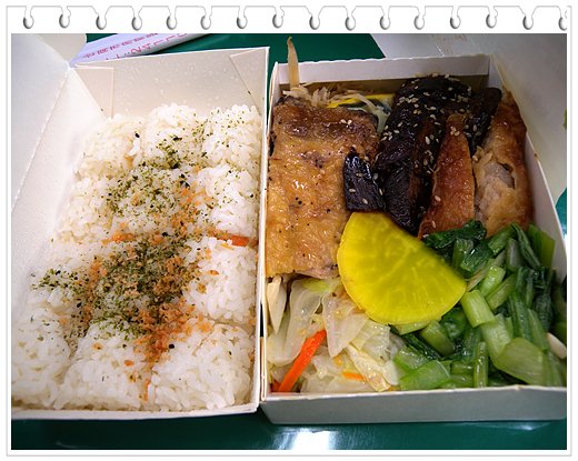 前些天去我們高雄動物園看白老虎下山後想說去吃個飯腦海中剛好想起某人說的鹽裎區非常有名的排骨飯因為沒買過而且看到他有分大便當盒跟小便當盒於是問了一下價錢安娘喂~~有加菜的---3樣--要85元沒加菜的,就是飯跟排骨,這樣要55小弟二話不說馬上轉身就走