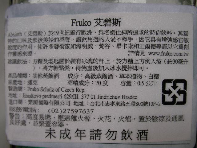 我也是在家樂福買的,上面是翻譯成艾碧斯,喝起來有非常淡的植物香味,像是薄荷葉的那種味道。不過這個有70%的酒精濃度,酒精的嗆辣蓋過香味,香味不是挺明顯。