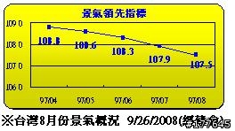 現在景氣只是亮了代表衰退的黃藍燈, 代表現在是處於經濟景氣剛要往下的階段,