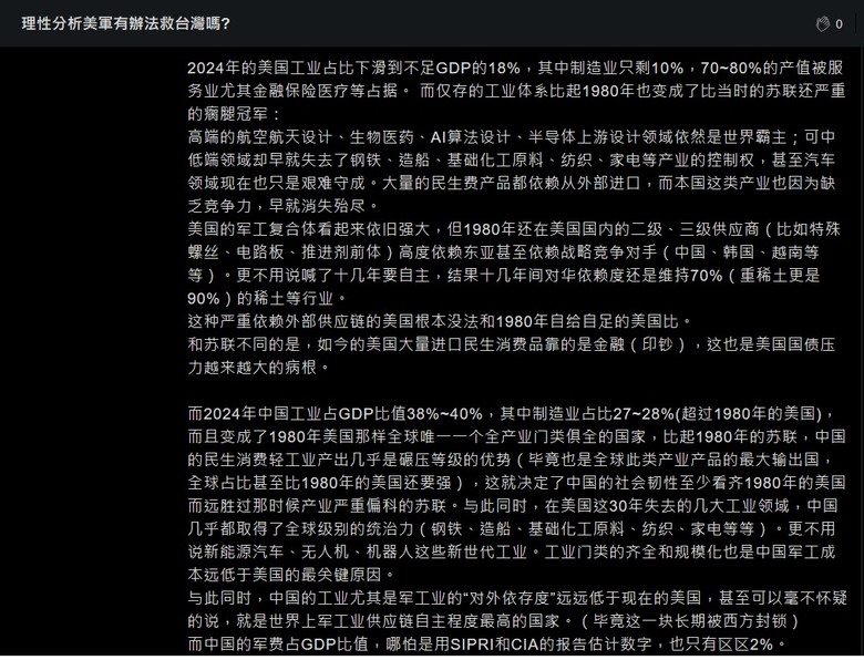 這個應該說是現狀亂猜的我自己會覺得美國會慢慢地拉升一點製造業的比例當然除了TSMC這類高價值的產品如果在美國生產會拉升美國製造的比例之外我自己會覺得美國會透過包含補助之類的手段找幾個成本比較便宜的州去生產一些美國覺得需要自己掌握的製造產業也許以美國現在的財政很難很大金額的補助但是類似稀土這類其實整體投資金額不是很大美國自己也有礦這種我會覺得美國內部那是有共識一定慢慢得自己有技術就算成本高但美國軍火工業的需求得自己滿足這個應該拉長時間是有共識的類似這樣的產業美國會長期持續投的機率應該很大當然這可能得10年以上就是