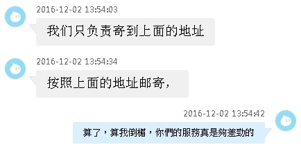 居然說:只負責寄貨到地址,其他不處理