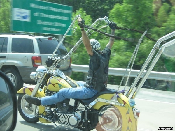 剛剛下班騎機車回家的時候看到了一個"奇象"(就我而言啦~)看到一名男性機車駕駛將左手手肘抵在機車儀表版上,然後用手掌托住下巴及整顆頭騎車,靠右手駕駛沿路上幾乎都是這樣騎車,連停紅綠燈的時候路口有警察也依然固我且該路段正逢下班時段,車流量也不少,他還是騎在汽車道咧...小弟在一旁看了就想說~這樣不會很危險嗎...雖然說不關我的事啦~但如果到時候一個不小心發生了交通事故該算誰的...這樣有比較帥嗎..