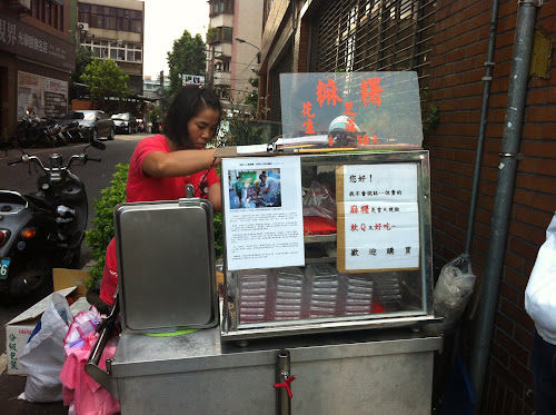 今天上午加班時,部落格及粉絲團同時收到留言,原來是去年發表的 板橋文化路「父子情麻糬」一文,余先生親自上來留言答謝,並表示因天冷下雨生意變得相當冷清,且最近創新的黃豆和枺茶麻糬也沒人買,看了覺得有點心酸,整個上午滿腦子都在想這件事,於是決定下午加班空檔再次前往探訪。