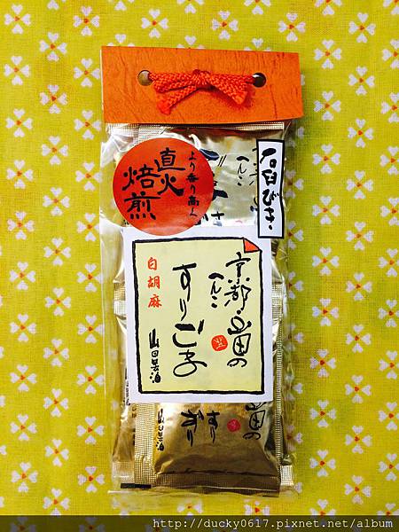 這是山田製油用直火焙煎後再用獨家開發的石臼研磨出來的白芝麻粉,以小袋分裝,用完就丢,可以避免芝麻粉沒用完氧化,每次打開時,芝麻粉香氣四溢。