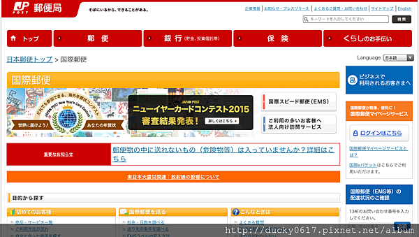 在網路的搜尋頁上打「日本郵局」進入畫面後,在最右下方有【國際郵便(EMS等)的配達狀況確認】