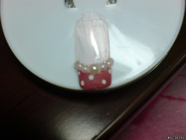 法式:指甲前端為白色+假床粉嫩紅簡單分享一下我的彩繪法式最愛法式~^^真的很喜歡自己弄滴美美滴...換上傳統白色法式~心情真好!呵呵...還是不太會抓 微笑線 跟 指肉的距離今天使用的指甲油左:SKIN FOOD的維他命護甲油中:CANMAKE的純白指甲油右:MYVIVEN的快乾指甲油步驟: 1.先用護甲油作底.看起來指甲粉透粉健康!2.用純白指甲油畫微笑線蓋過指甲.微微呈現V型.3.用快乾指甲油上最上層.呈現透亮!心得:自己畫過好幾次法式了...總是有點會露出指甲...或是上下比例抓不好...變得白色很大一塊...不過還是最愛純白又優雅的法式!簡簡單單..不用貼鑚就很美!(不過要好好練習!!) 個人還是覺得方型指甲較好看^^同場加映:變化法式+珍珠