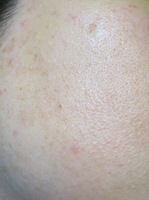 一開始的臉是這樣。我一向毛孔粗大,而且最近壓力大內分泌有點失調,一直冒痘痘還長怪東西。