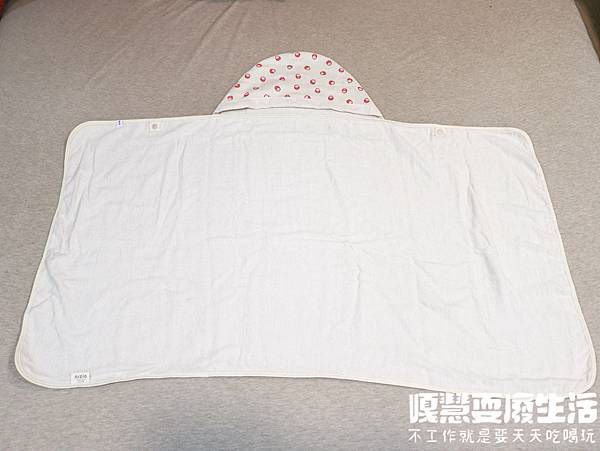 正在煩惱寶寶包巾要去哪裡買時,就收到新生兒出生禮,nizio成長浴巾除了是浴巾外,還可以是斗篷或是包巾,一巾多功能使用,非常適合我這種懶人媽媽。