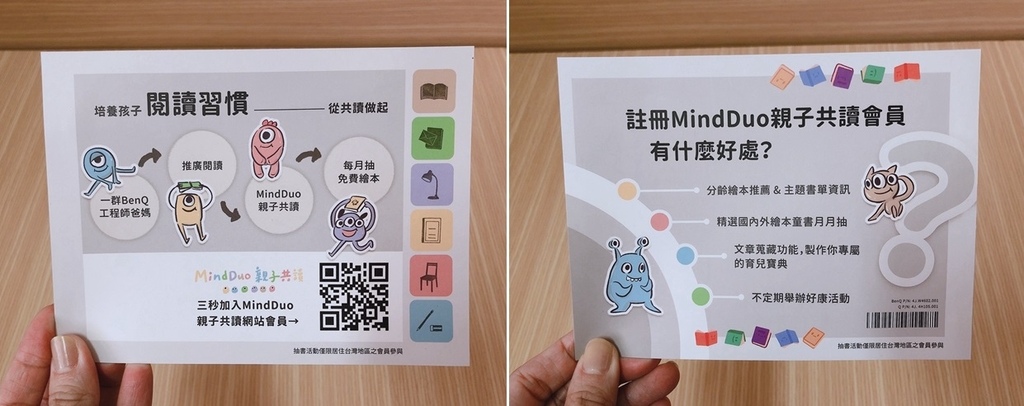 噢對了!還有這個特別的福利~ 加入MindDuo親子共讀會員,就有分齡繪本推薦&主題書單資訊、精選國內外繪本童書月月抽、文章蒐集功能、不定期好康活動唷:)