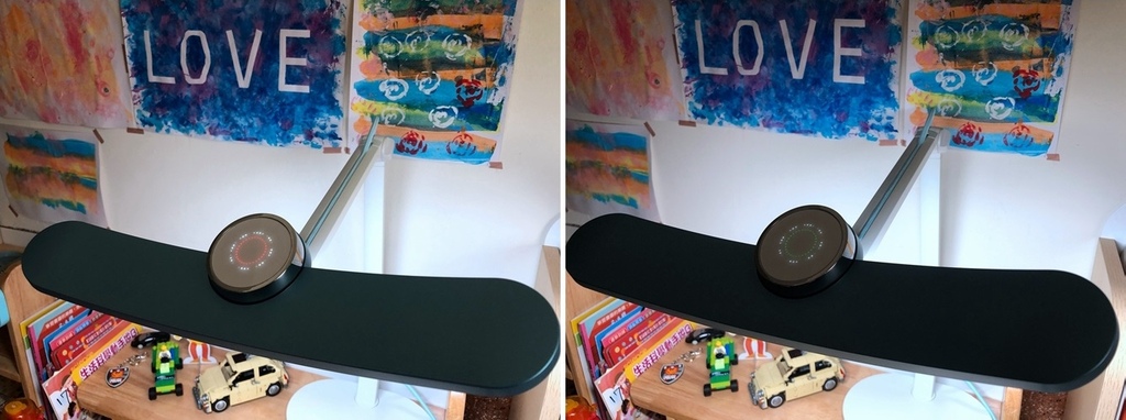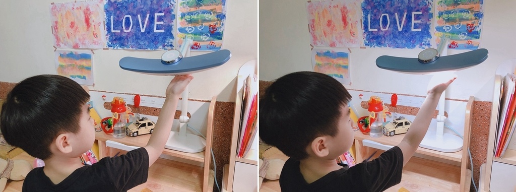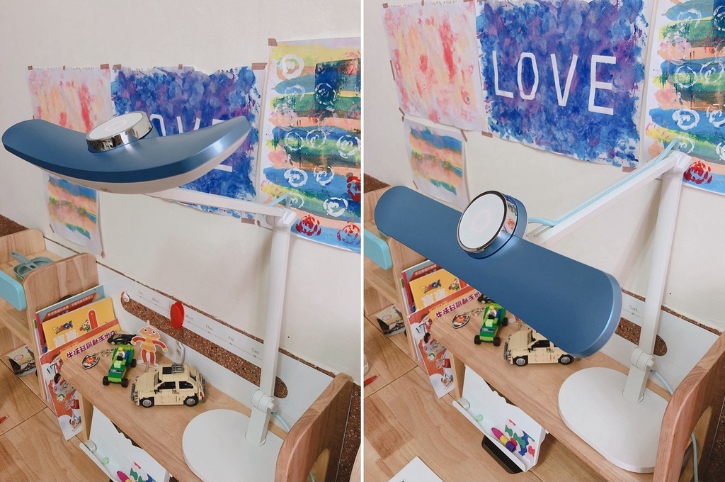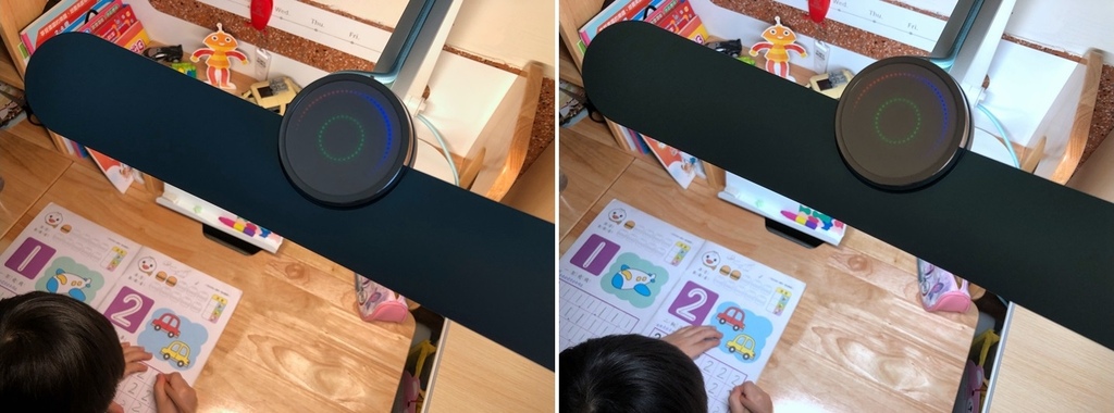 符合 AA 級照度(日本 JIS 最高等級 AA 照度標準):衍色性更好,在MindDuo 光源照射下能讓書本/繪本的色彩更鮮明飽和~ 左邊照片沒開檯燈,右邊照片有開檯燈。在親子共讀的時刻,也要注意一下燈源唷:)