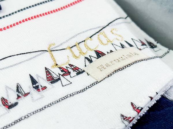 在小小的短袖上可以看到Haruulala的小logo,自從亮亮穿了這件衣服出席曾祖母的壽宴後,所有親戚都在問這件衣服哪裡買的?這麼可愛又英俊,回去也要買一套給他孫子穿。
